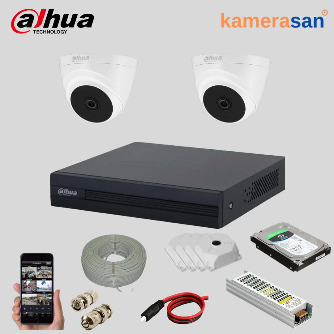 Dahua 2 Kameralı AHD İç Mekan Ev Güvenlik Paketi – Full Set Kamera Sistemi